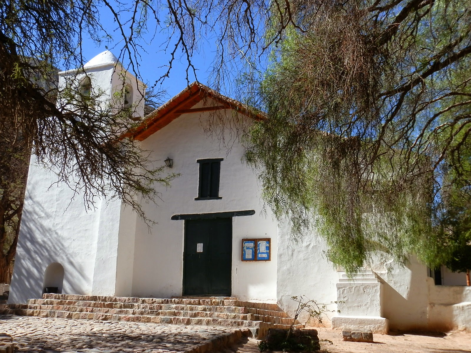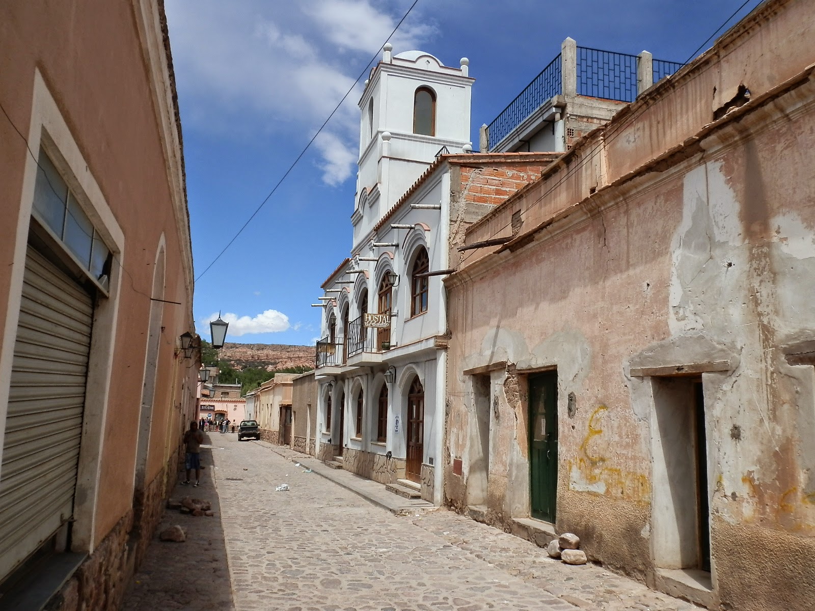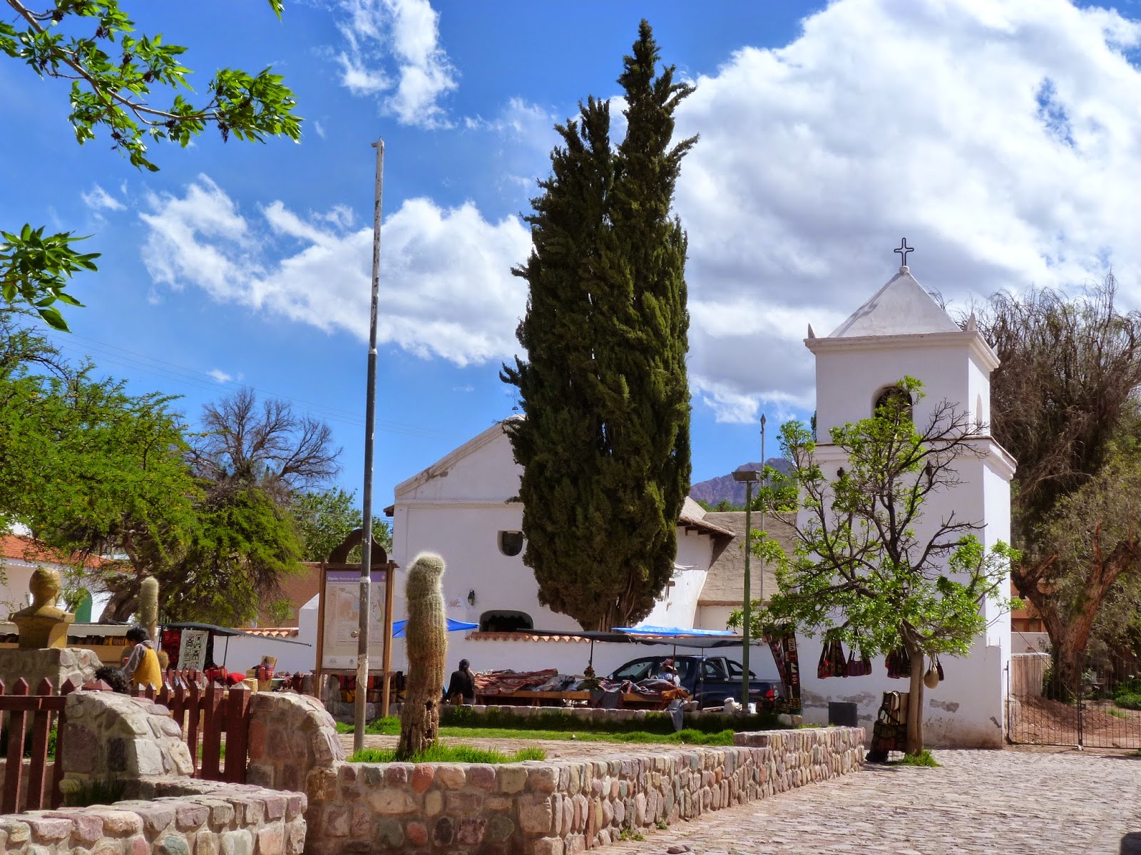 Ce n’est qu’en fin de journée que nous sommes ENFIN arrivés fourbus à CACHI, adorable petit village indien perché à 2200m d’altitude. Les maisons y sont blanches, les rues sont entièrement pavées, les panneaux dans les rues sont faits en bois de cactus, tout comme le plafond de l’église d’ailleurs. Nous avons beaucoup aimé cet endroit, ainsi que l’hôtel (pas spartiate mais presque !!!) dans laquelle nous avons passé la nuit.
