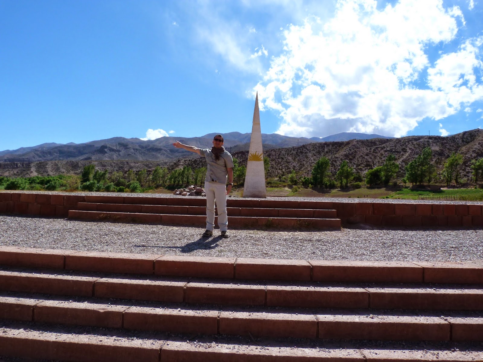 Avant de reprendre la route, nous avons profité d’une petite balade digestive dans les rues (désertées) de Humahuaca. C’est en gravissant les escaliers qui mènent au Monument de l’Indépendance que nous avons subitement pris conscience que nous nous trouvions à 3000 m d’altitude !!! Nous sommes arrivés là-haut complètement essoufflés et épuisés, mais la vue panoramique valait le petit effort…