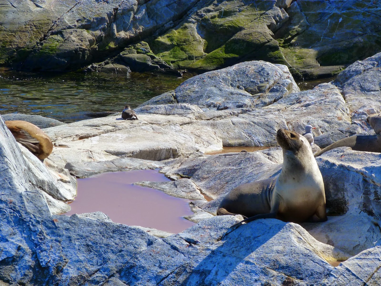 Le lendemain matin, une surprise inespérée nous attendait dans le ciel : un magnifique soleil dans un beau ciel bleu !!!! Le truc qui n’arrive pas souvent…. Une chance inouïe pour le programme du jour : une mini croisière en catamaran sur le Canal de Beagle (point de rencontre des océans Pacifique et Atlantique) pour découvrir les fjords et les falaises, observer les îles peuplées de phoques et d’oiseaux, et atteindre le Phare des Éclaireurs.