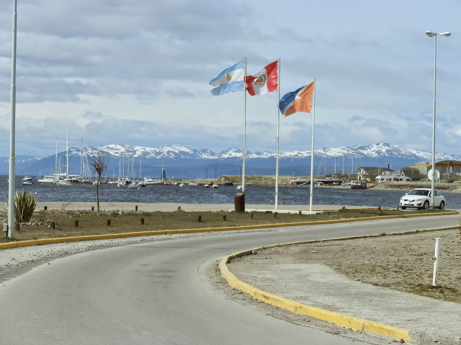 Le changement est radical ! D’abord il fait froid. Ensuite, la chose à laquelle je ne m’attendais absolument pas là-bas : Ushuaïa est au pied de montagnes enneigées… Je ne sais pas pourquoi mais je m’imaginais le bout du monde complètement plat en bord d’océan. Et bien pas du tout, on dirait les Pyrénées qui plongent dans la mer !!!