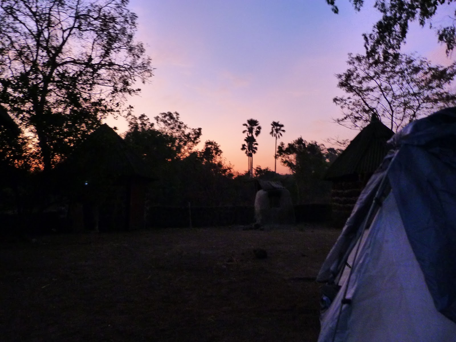 Nul doute que la bête a été tuée à l’endroit même où Philéas a fait son brin de toilette la veille… De quoi se rappeler, dès le saut du lit (enfin….. lit….. disons plutôt « matelas » de tente, inconfortable au possible….), que nous sommes en terre sauvage et potentiellement hostile !!! Pour ma part, avec l’ambiance nocturne assurée par la faune locale, je ne risquais pas de l’oublier !!!