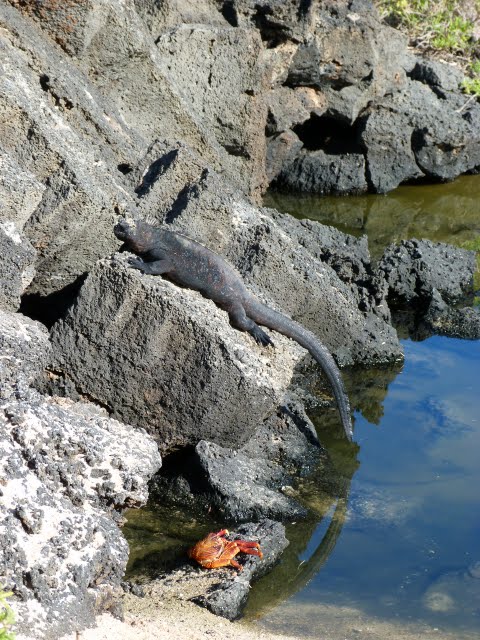 Avec les incontournables et envahissants crabes rouges (qui ne deviennent rouges qu’à l’âge adulte, avant ça, ils sont noirs), on peut y observer des pélicans, des otaries facétieuses faisant leur aquagym aux côtés d’iguanes marins revenant de leur festin sous-marin.