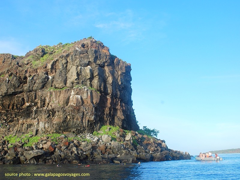 Pour atteindre le site, le zodiac passe non loin de la Corona del Diablo (Couronne du Diable), un ancien cône volcanique érodé par les vagues. Le récif corallien qui s’y est développé est l’un des lieux les plus réputés pour le snorkeling et la plongée. D’importantes colonies d’oiseaux marins nichent là également.