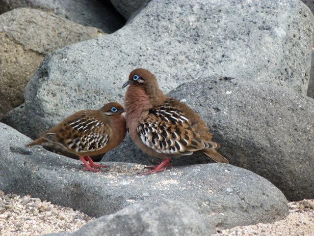 On trouve aussi les fameux pinsons de Darwin (espèce endémique différente sur chaque île de l’archipel), des grands hérons bleus, des sauterelles, des oiseaux moqueurs des Galápagos.