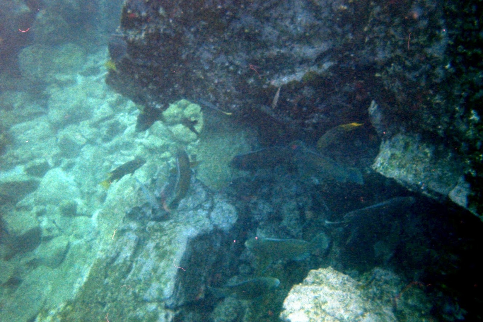 De nombreuses otaries rejoignent les plongeurs en herbe qui s’émerveillent dans cet aquarium naturel. Les requins à pointe blanche y sont nombreux mais parfaitement inoffensifs. Une multitude de poissons de toute sorte vit là. On peut y voir aussi des raies et des tortues marines.