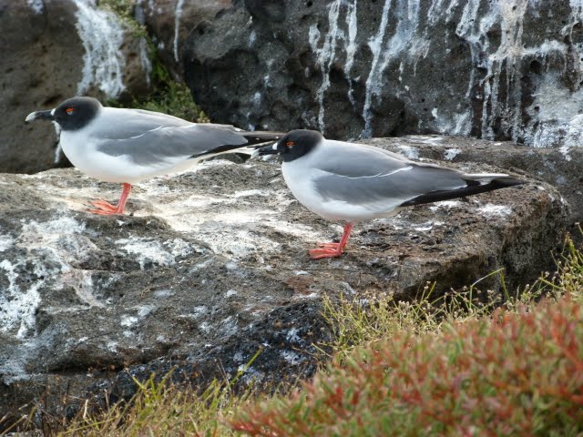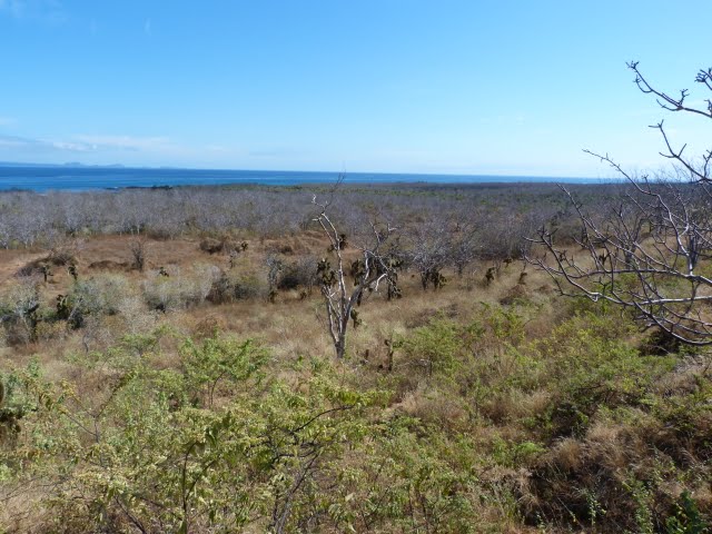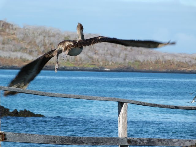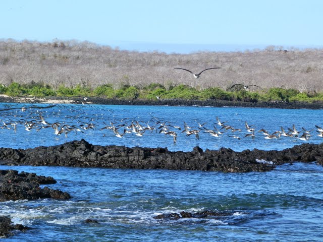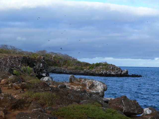 L’île abrite la plus grande colonie de frégates des Galápagos. D’autres colonies d’oiseaux vivent là, comme par exemple des magnifiques fous à pattes bleues qui nichent à même le sol un peu partout (les pattes ne deviennent bleues turquoise qu’à l’âge adulte), des mouettes à queue d’aronde, des pélicans, des tourterelles, des parulines (=fauvettes jaunes).