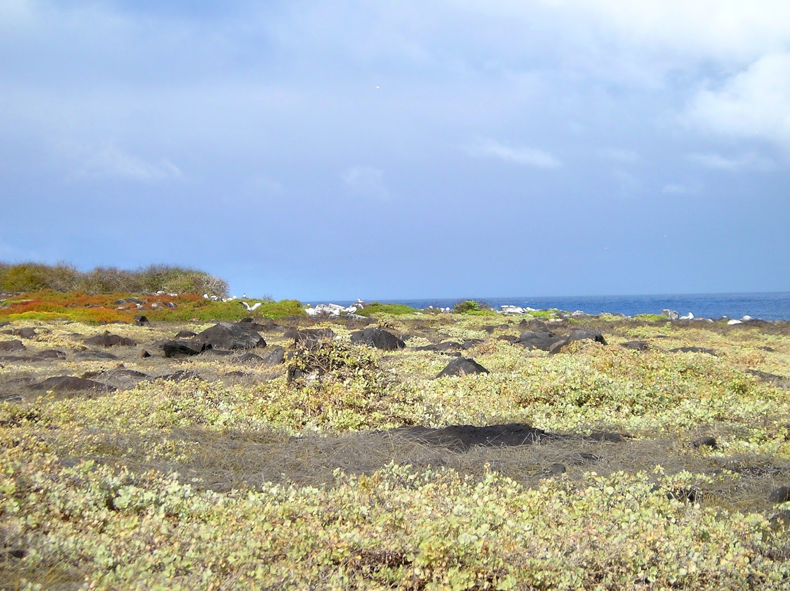 La seule source d’eau potable de tous les Galápagos, la laguna el junco, un lac alimenté par les eaux de pluie, se trouve ici sur les hauteurs au Sud de l’île, dans un petit cratère à l’intérieur d’une grande caldeira de volcan.