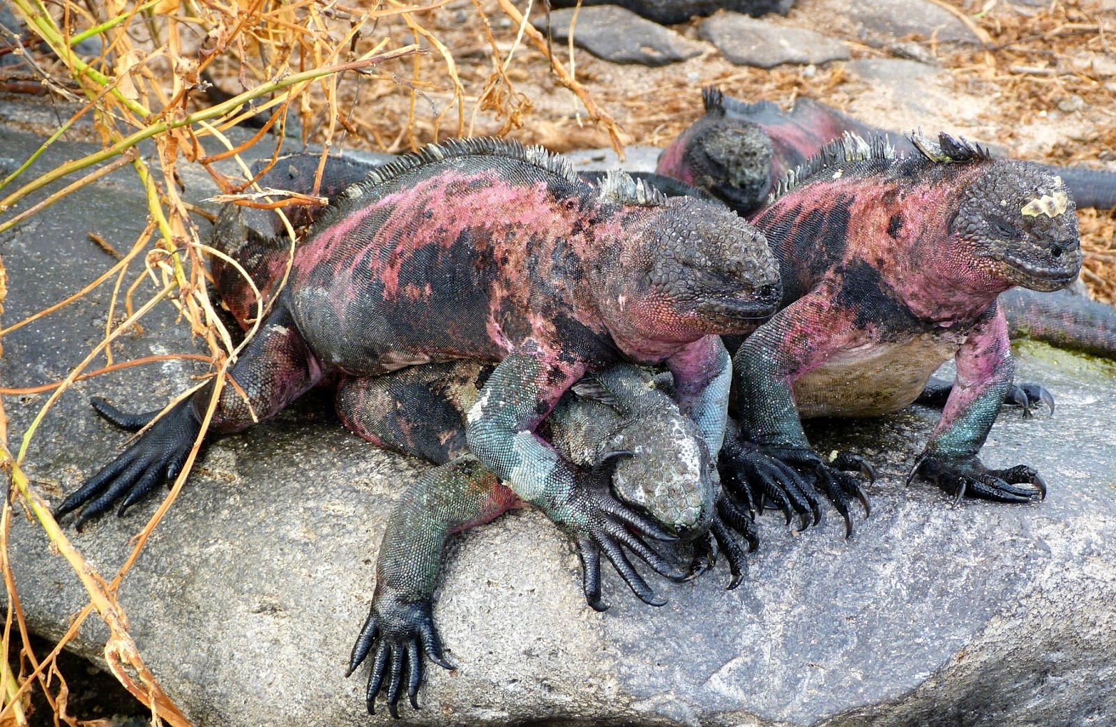 Ils se partagent le territoire avec leurs cousins les iguanes terrestres, aussi laids mais beaucoup plus colorés, et beaucoup plus gros ! Ils sont inoffensifs et herbivores.