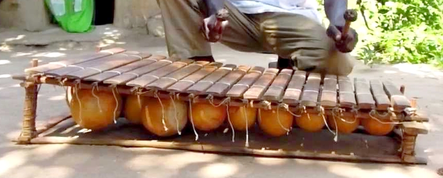 Autre instrument africain typique connu : le balafon. Il s’agit d’un xylophone dont les différentes lames de bois sont attachées sur un châssis en bambou. Frappées avec des bâtons avec une boule, elles résonnent grâce à des calebasses de tailles variables percées de trous et fixées juste en-dessous.