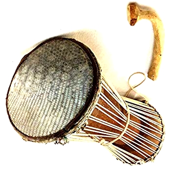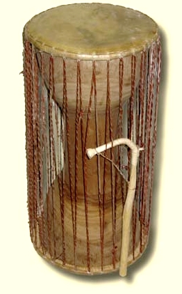 Le griot peut utiliser aussi un tama (ou tamani) qu’il glisse sous l’aisselle. Il s’agit d’un petit tambour en bois creusé, sculpté en forme de sablier, avec une peau de varan (ou de serpent) tendue à chaque extrémité par des cordes reliées de chaque côté. Par pression du bras, ces cordes permettent de changer les sonorités par les variations de tension de la peau de reptile sur laquelle le musicien tape avec le bout des doigts et un bâton recourbé.