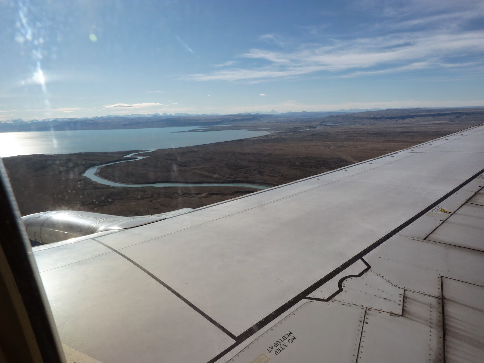 Après 600 kms survolés, nous voici arrivés à EL CALAFATE au bord du LAGO ARGENTINO dans le PARC NATIONAL DES GLACIERS.